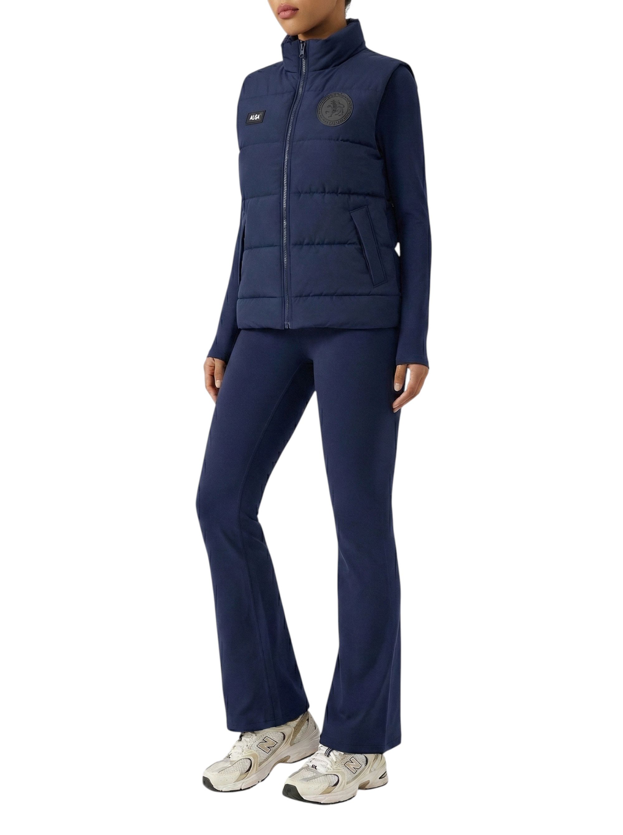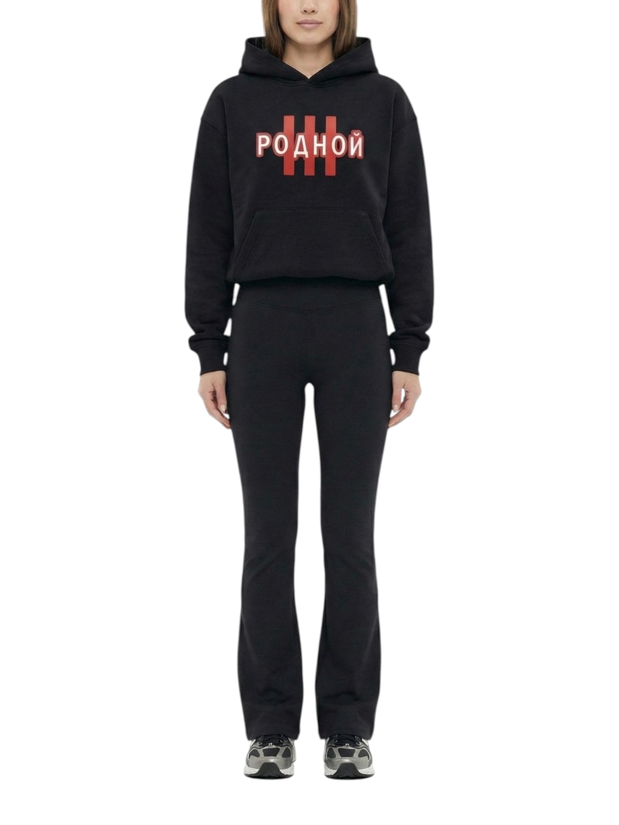 Расклёшенный низ создаёт выразительный силуэт, а логотип на пояснице подчёркивает фирменный стиль.